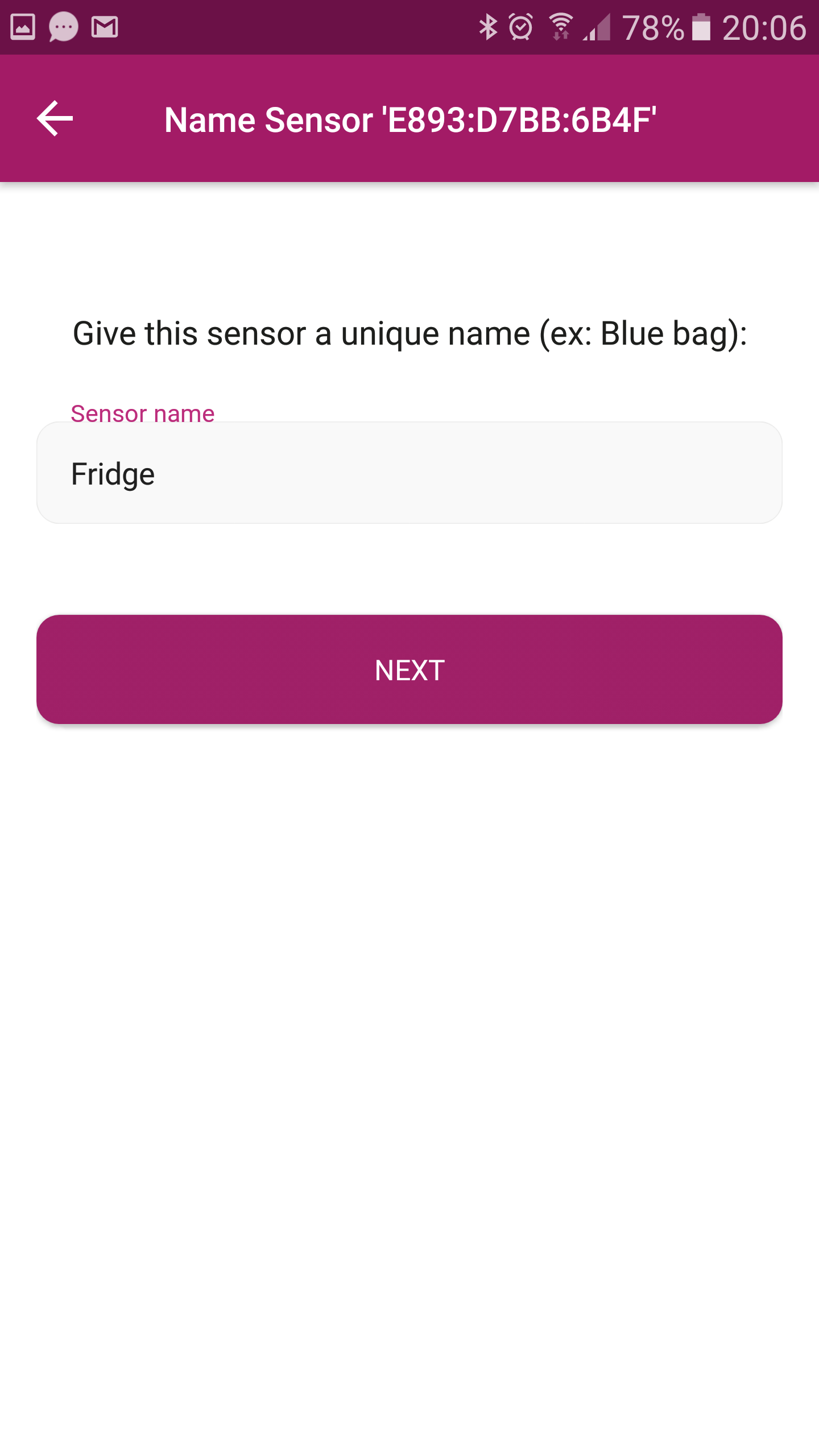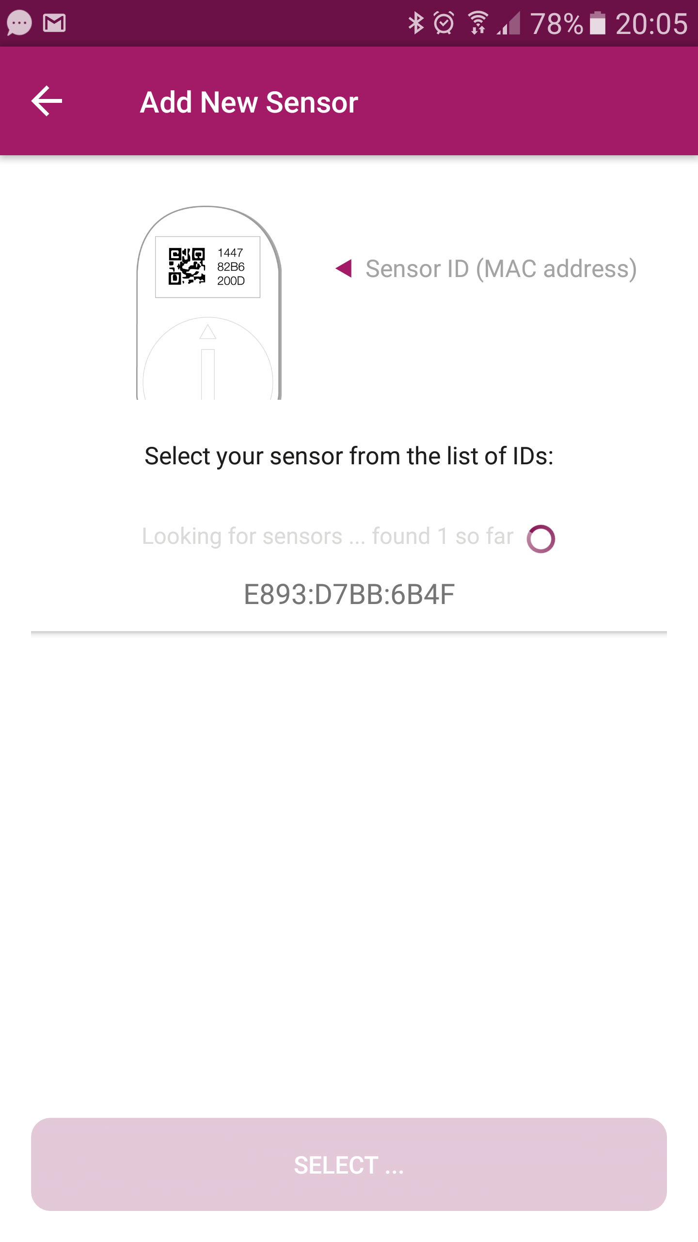 - Click ”Add New Sensor” your device will scan for available bluetooth devices, select the sensor ID. You can rename the device if you choose, I called mine ”Fridge”