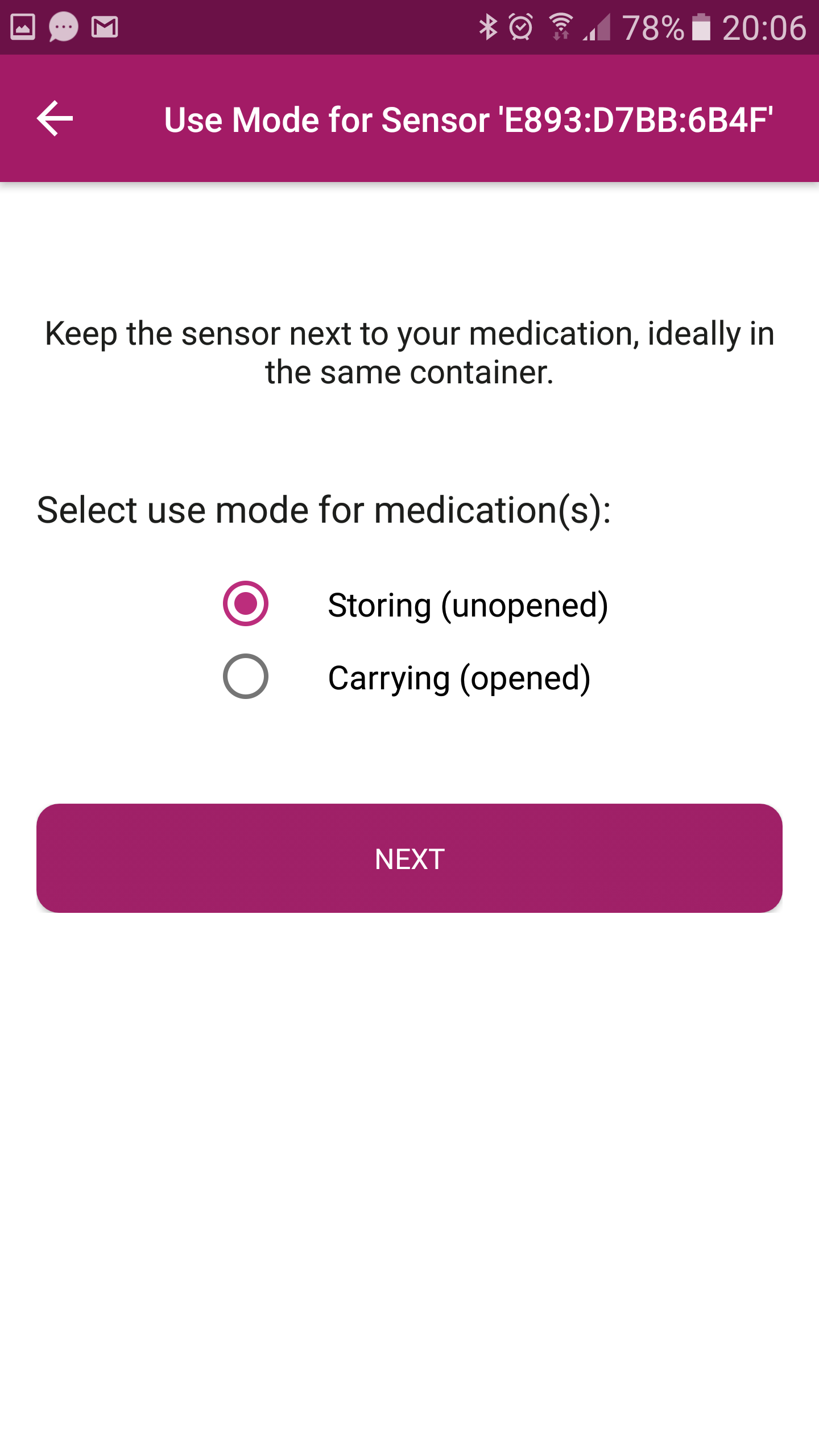 - Select what you will be using the sensor for, either storing or carrying insulin